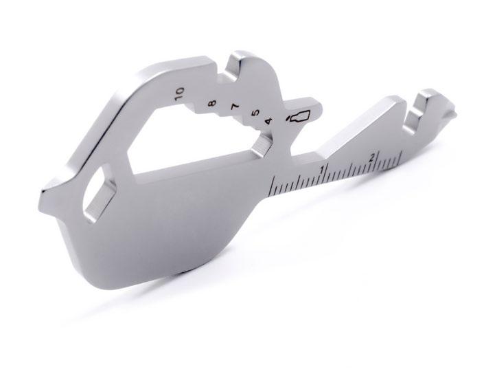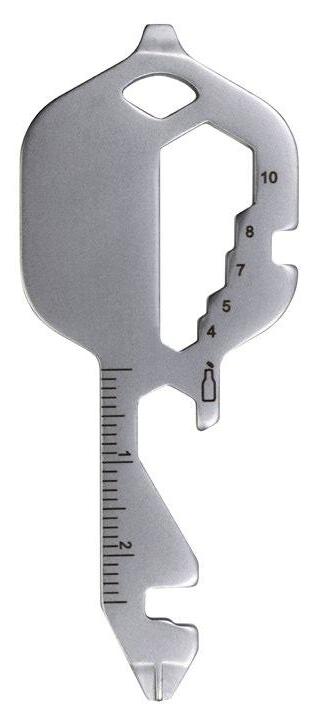 Made of hardened martensitic stainless steel 2CR13, the sleek Key shape multi-tool features 12 tools that do everything from tighten bolts and screws to open a bottle of refreshment, all in a sleek key design that can be attached to a keychain making it convenient to carry.