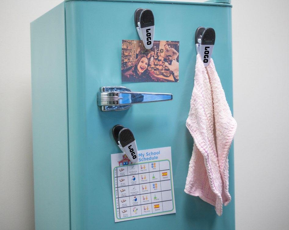 The Powerclip magnets can be used for the fridge: hanging photos, or notes, and can also be used as a keychain or pen holder on a whiteboard. Also excellent for home, kitchen, office, and school usage. This magnetic clip, when using your imagination has endless uses.