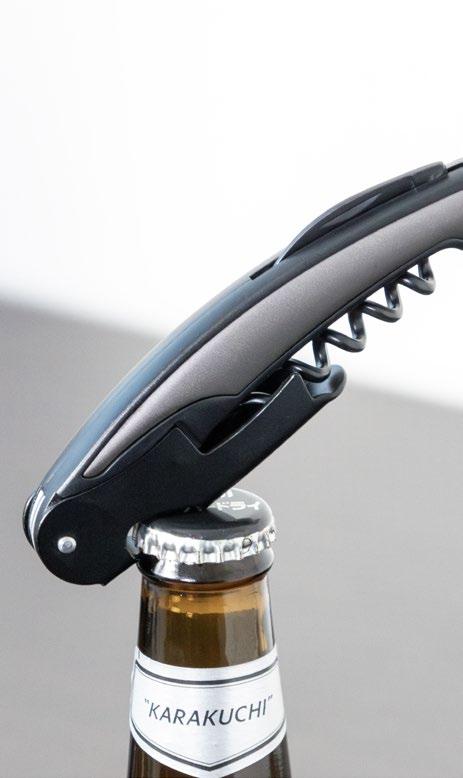 The Sommelier is made for sommeliers and amateur wine enthusiasts. With beautifully finished aluminium handles this tool is built with precision to deliver style and professional ease of use. A two step lever, a foil cutter, a reliable corkscrew and bottle opener are making this the ideal choice for picnics and dinner parties.
