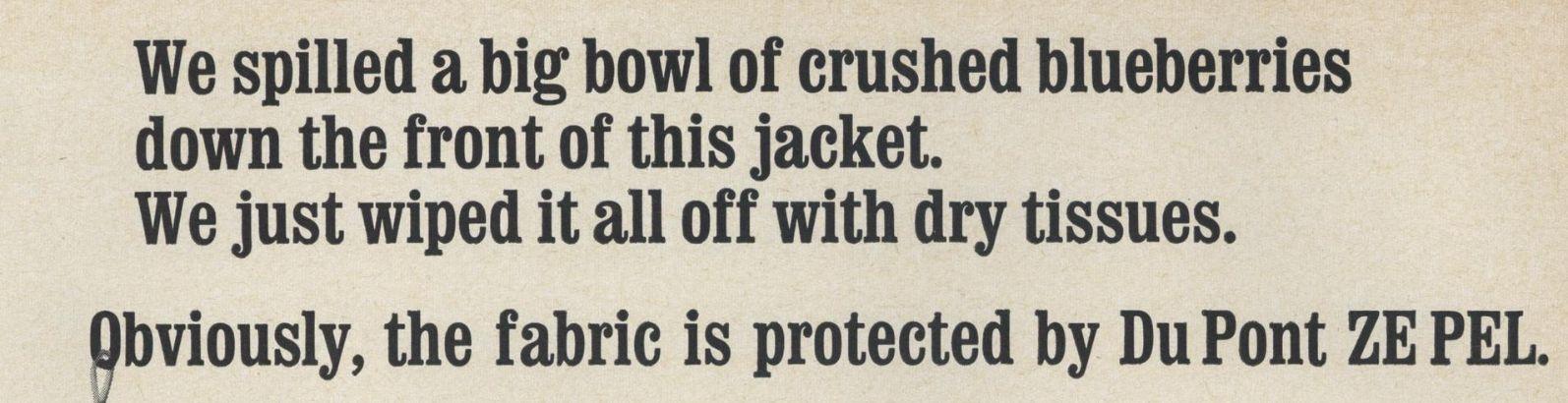 Zepel isn’t the only “fabric fluoridizer” on the market! So are name brands Scotchgard and Gore-Tex. Even the US Army has its own version - Quarpel. Almost all stain or water resistant fabrics have been treated with some version of a PTFE. It’s more than just raincoats! Think of your khakis, your couch, your carpet…even Band-Aids.