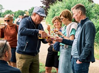 Wijnboerderij in Sint-Geertruid met ambachtelijke wijnen, een bourgondische sfeer en gastvrije proeverijen op terras of in het proeflokaal.