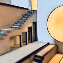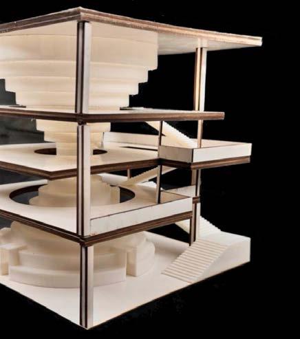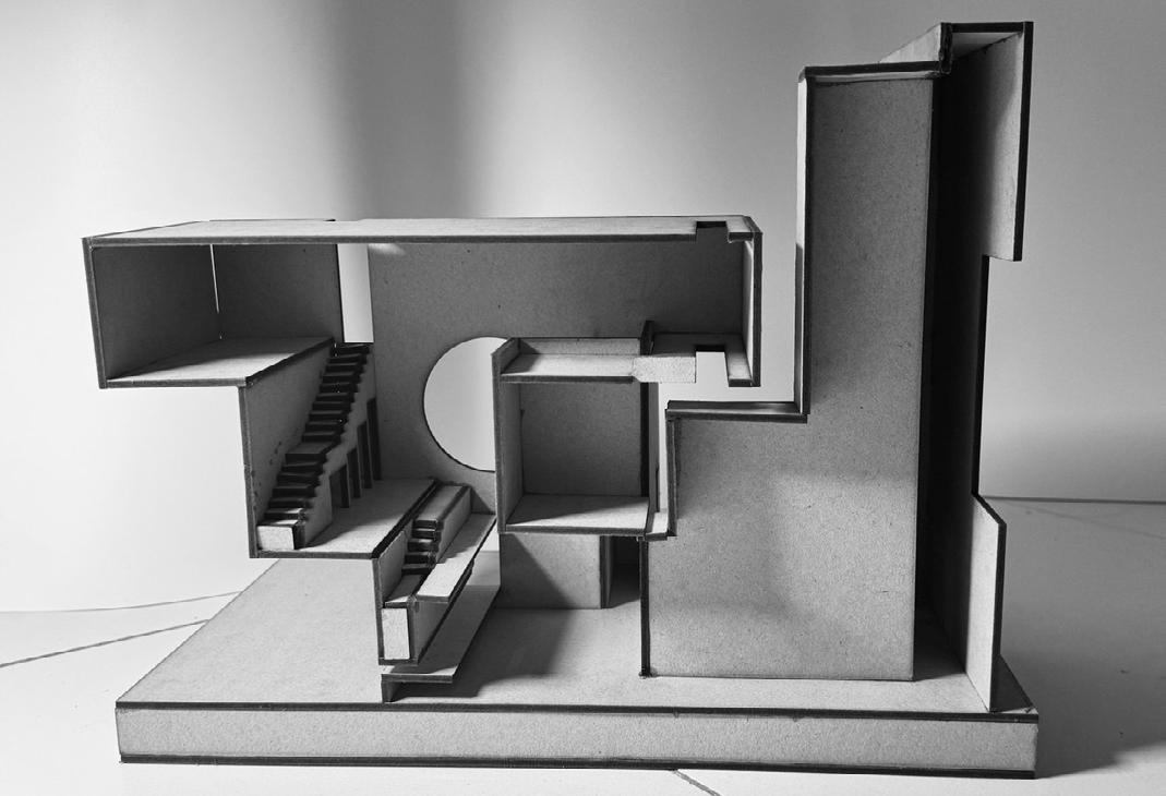 THIS PERSPECTIVE WAS CAPTURED AT THE MAIN STAIRCASE, SHOWING THE THREE FACADES IN THE INTERIOR. IT ALSO REFLECTS THE USER'S MOVEMENT AND SPATIAL FUNCTION.