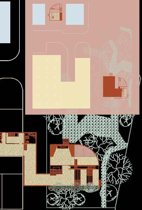 THE LECTURE ROOM IS A DOUBLE-VOLUME SPACE. THE LOWER PART OF THE LECTURE HALL IS A CORRIDOR OF THE FIRST LEVEL, WHICH PROVIDE AN ALTERNATIVE PATH FOR STUDENT TO REACH THE FREE SPACE.