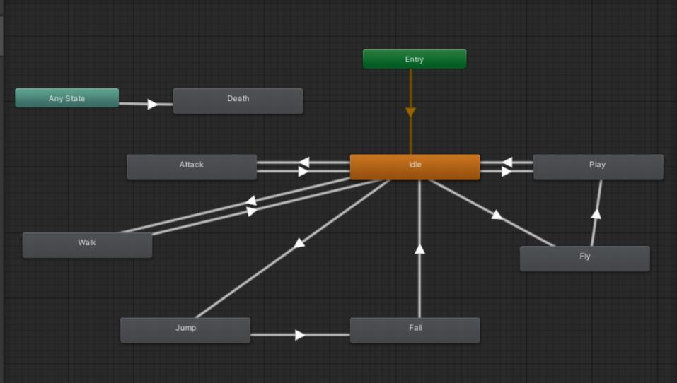 The enemies have customized animations and AI system capable of patrolling, detecting players, attacking, chasing, and pathfinding. The enemies' attributes (speed, damage values), attack desire, distribution locations, and numbers have been adjusted and improved multiple times, resulting in a reasonably challenging difficulty.