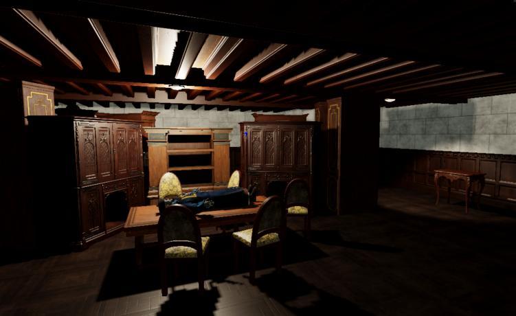 The game's scenes are coherent and connected, consisting of many rooms and corridors. Players have numerous possible exploration routes. The lighting in the scenes is generally dim to enhance the feeling of horror, but certain areas are intentionally made brighter for gameplay considerations.
