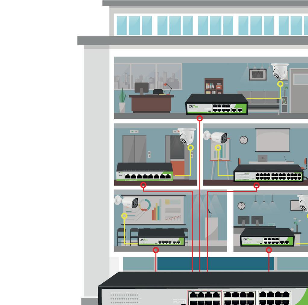 Grazie alla trasmissione PoE a lunga distanza (fino a 250 m) e alla protezione da sovratensioni di 4 kV, garantiscono un funzionamento stabile in vari ambienti.