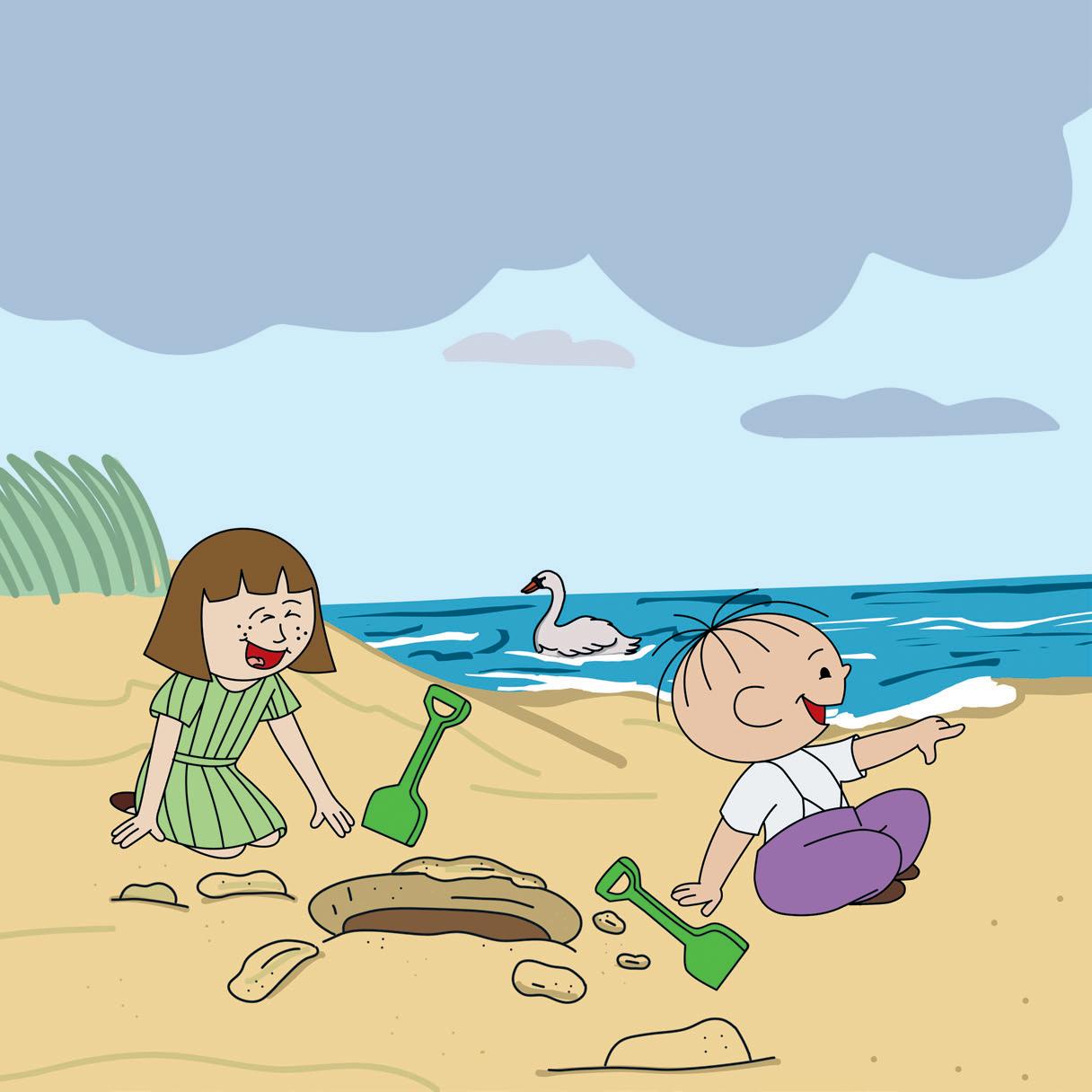 coraz szybciej i szybciej. Dziura w piasku była już naprawdę głęboka.