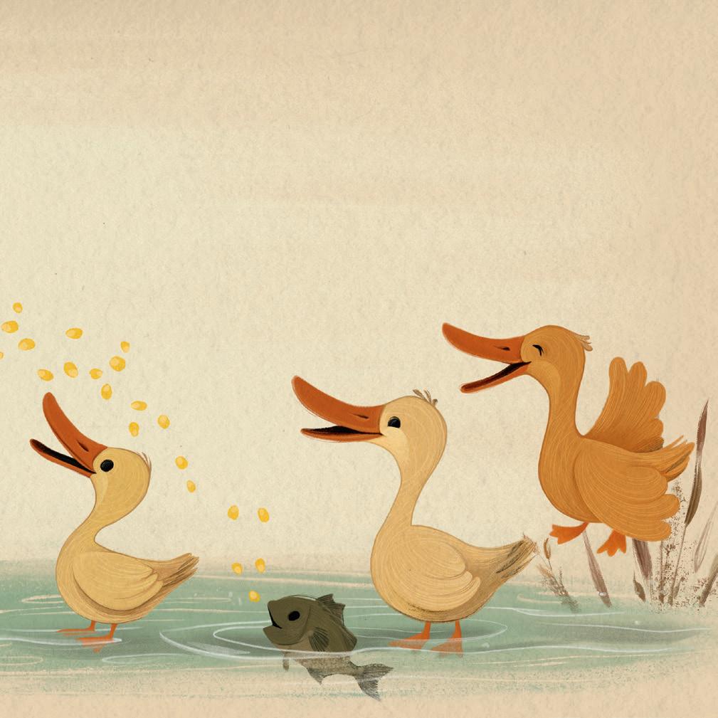 A wiesz, że kaczki nie mają zębów? – zapytała inna kaczka. –Tylko ząbkowane dzioby, żeby wyławiać jedzenie z wody jak sitkiem.