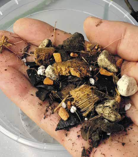 Biały osad widoczny na bryle korzeniowej po wyciągnięciu z doniczki