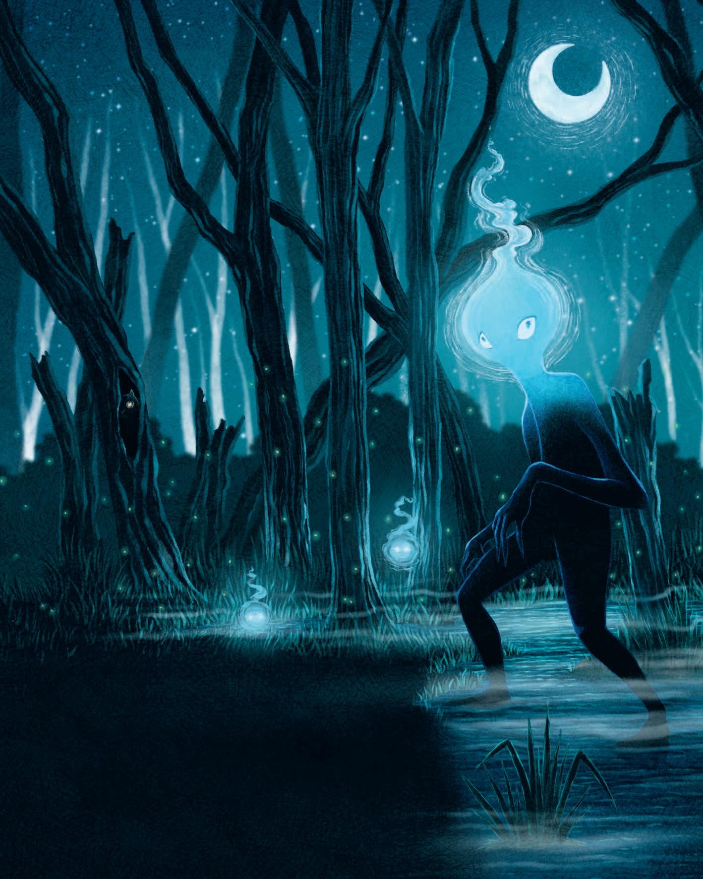 Niektórzy zarzekają się, że w bladym świetle księżyca widzieli, jak naprawdę wyglądają błędne ogniki –mówią, że to wysokie postacie ze spłaszczonymi świecącymi głowami. Inni twierdzą, że błędne ogniki przypominają ubranych w czerń ludzi trzymających migoczące latarenki. Jak jest w rzeczywistości? Lepiej nie ulegać pokusie, by przyjrzeć się im z bliska! I tak odlecą, a wy wylądujecie w bagnie.