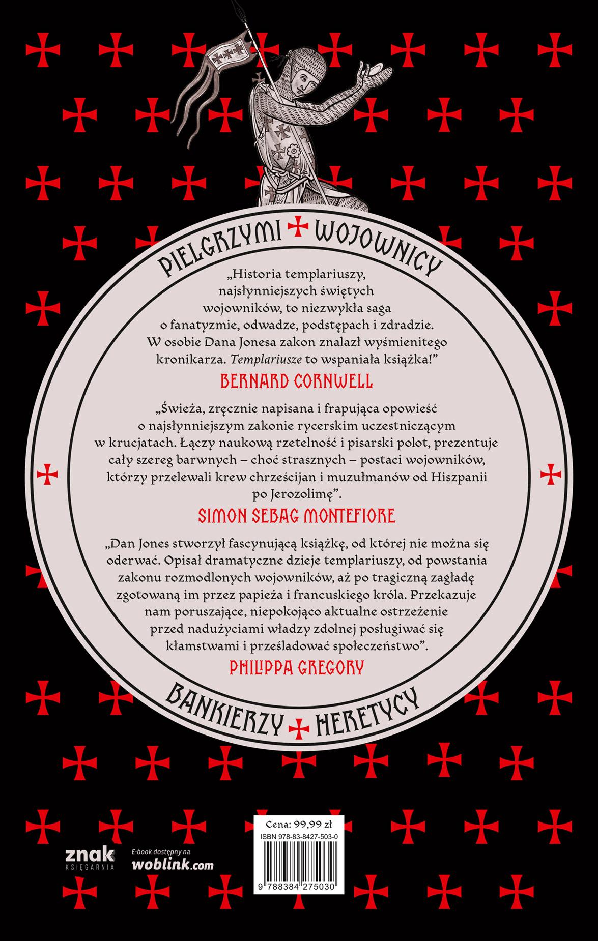 Templariusze byli świętymi wojownikami, ludźmi wiary i miecza, pielgrzymami i żołnierzami, nędzarzami i bankierami. Nosili szatę z czerwonym krzyżem na piersi: kolor symbolizował krew Chrystusa przelaną za całą ludzkość oraz krew, którą oni gotowi byli toczyć z wrogów w służbie Panu. Choć w średniowiecznej Europie i w Ziemi Świętej między XI a XIV stuleciem powstało wiele innych zakonów, żaden nie dorównał im pod względem sławy. Żaden też nie budził tak wielkich kontrowersji.