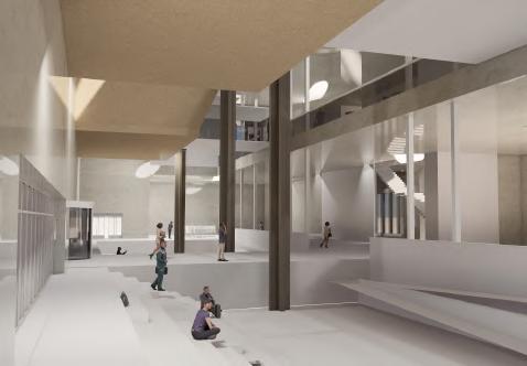 The existing building has multiple changes and adjustments over time. For the proposal is to demolish the CLASP system, which is considered hazardous with its construction. Four existing cores and most of the interior are retained to minimize the changes. The current building fabric shows windows are covered with boards, these will be removed and replaced with double-glazing that ae more sustainable.