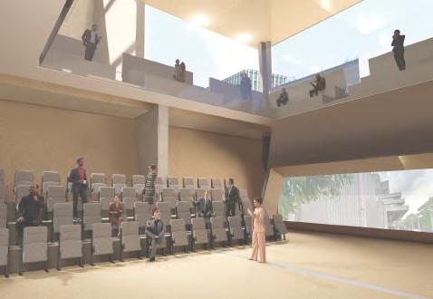 A hybrid system of steel and CLT structure is placed for the proposed extended building. Steel grid allows flexibility and inclusive access. Each perforated panel is 3mm thick in Coten Steel, with high durability, weather resistance and the natural rust contrast with the existing brick facade.
