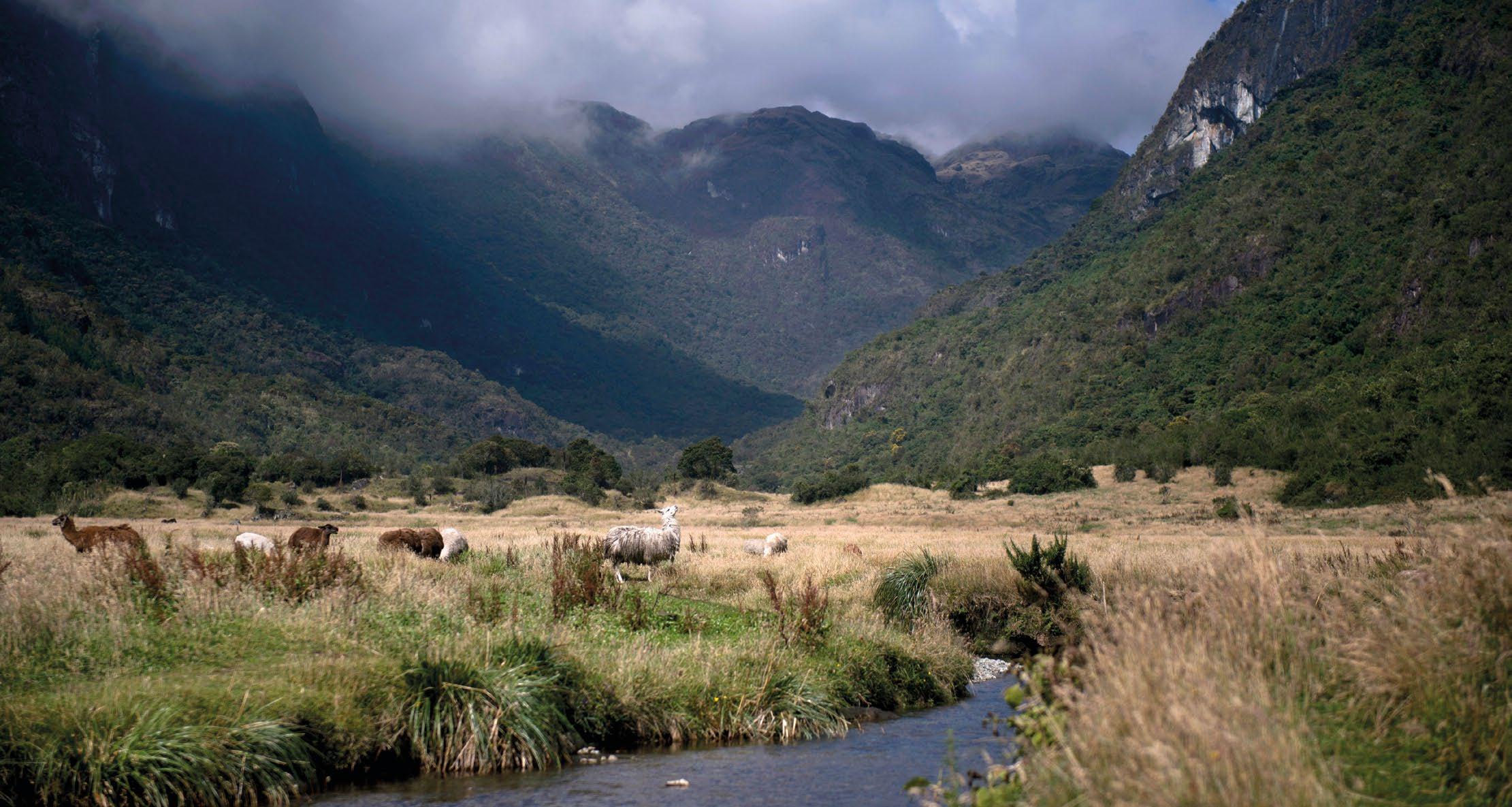 The Andes exemplify the role of mountain ecosystems in sustaining both highland and lowland societies. High-elevation systems—such as páramos, puna grasslands, cloud forests, and peatlands—regulate freshwater flows, stabilize soils, store carbon, and provide culturally significant landscapes. These ecosystems supply water to millions through yearround streamflow that feeds major rivers across Colombia, Ecuador, Peru, and beyond. Mountain agrobiodiversity, including native crops like quinoa and potatoes, contributes to food security and resilience to climate variability.