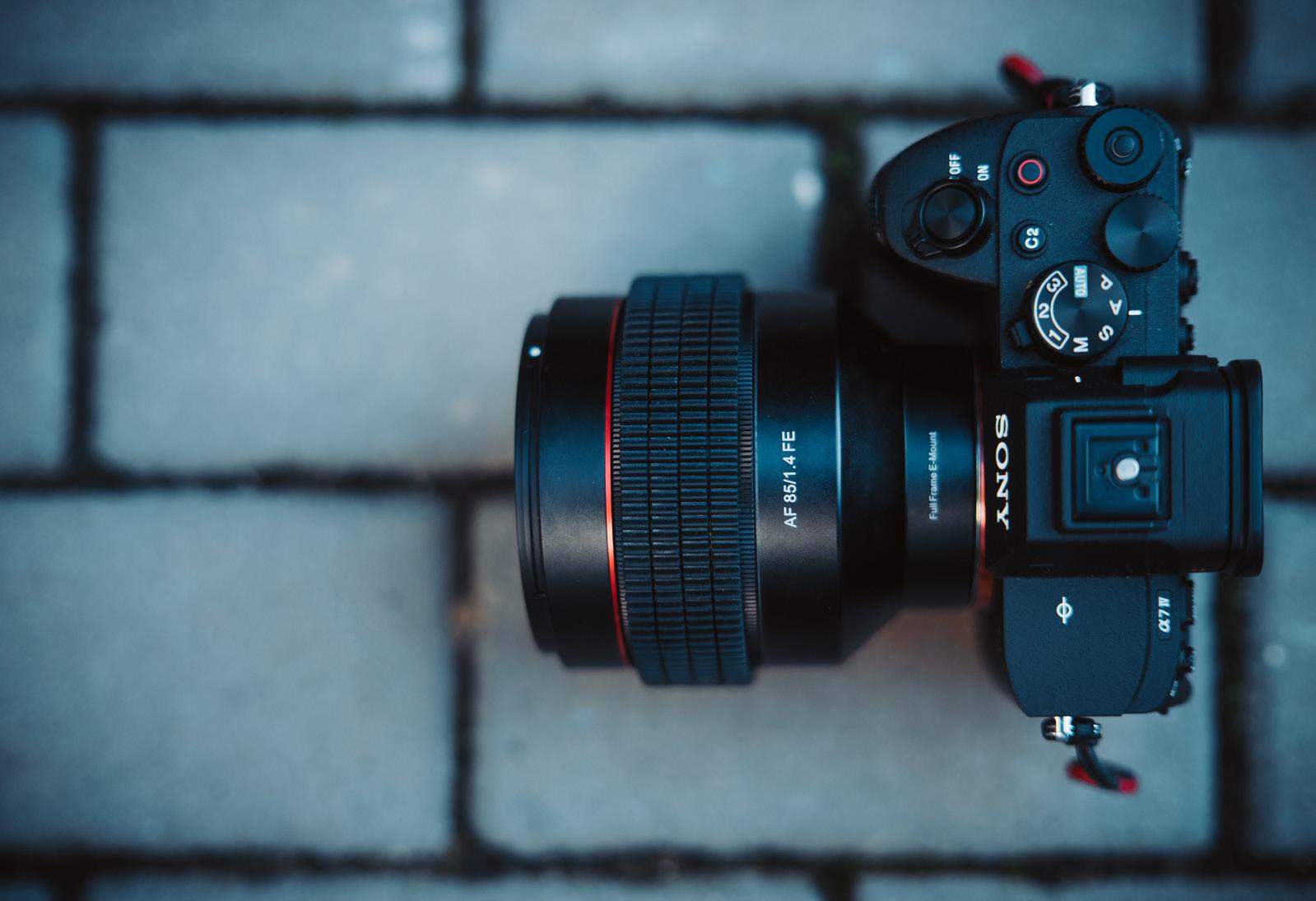 Eine Kamera mit einem lichtstarken 85-mm-Objektiv, das sich optimal für BokehFotografie eignet.