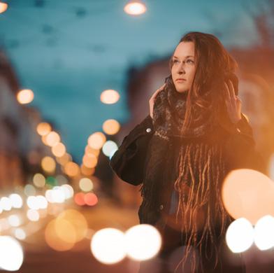 Ein externer Blitz oder eine andere Lichtquelle sind ebenfalls nützlich, um das Model bei Bedarf zu beleuchten. Das ist jedoch nicht immer notwendig. Sie können auch natürliches Licht oder künstliches Licht aus der Umgebung (Straßenlampen, beleuchtete Schaufenster usw.) verwenden.
