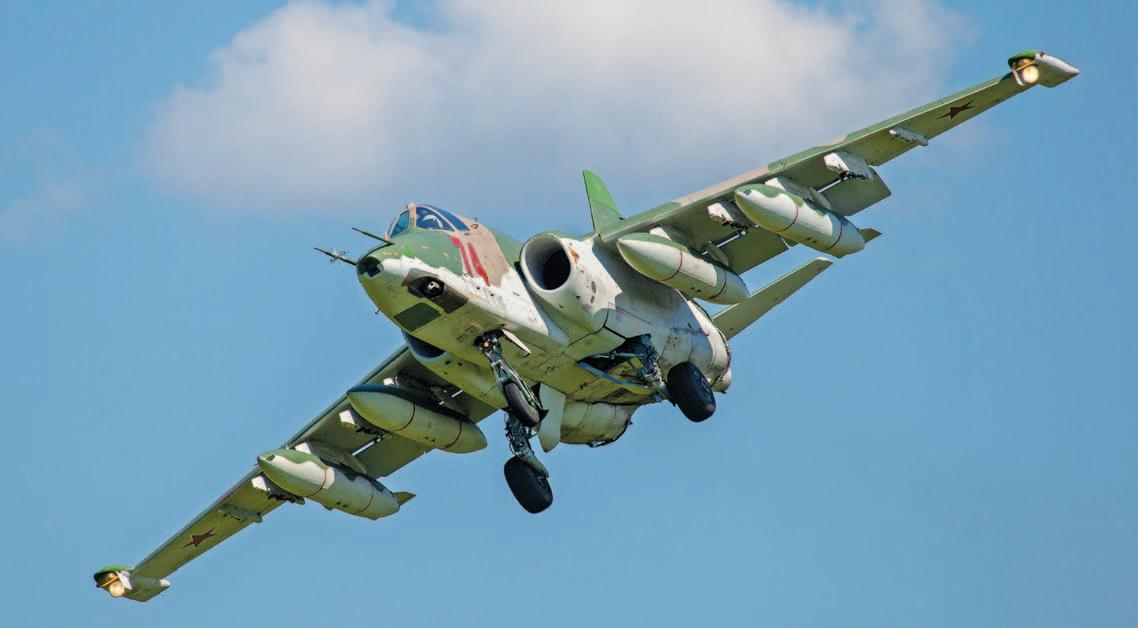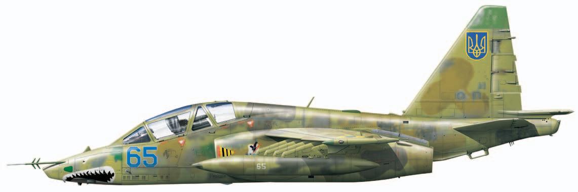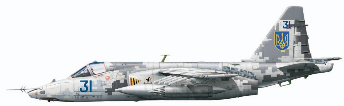 Stroj ukrajinského letectva reprezentuje modernizovaný exportní model Su-25K. Kromě pum a raket mohou frogfooty nést i pouzdra s dvouhlavňovými 23mm kanony s 260 náboji