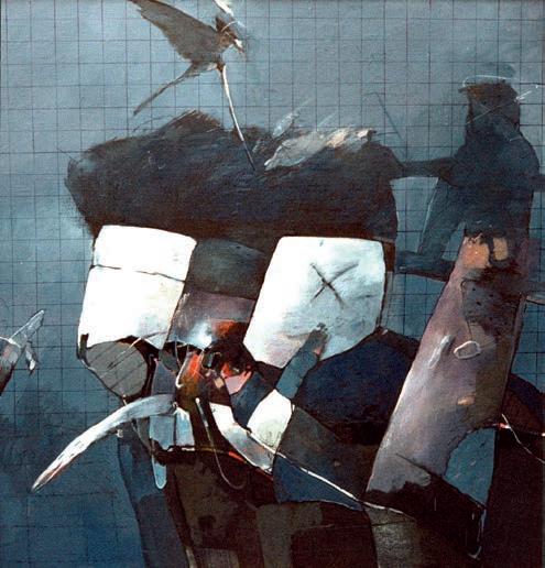 Z cyklu Ptáci, 1982, malba do sádry, 16 × 18 cm