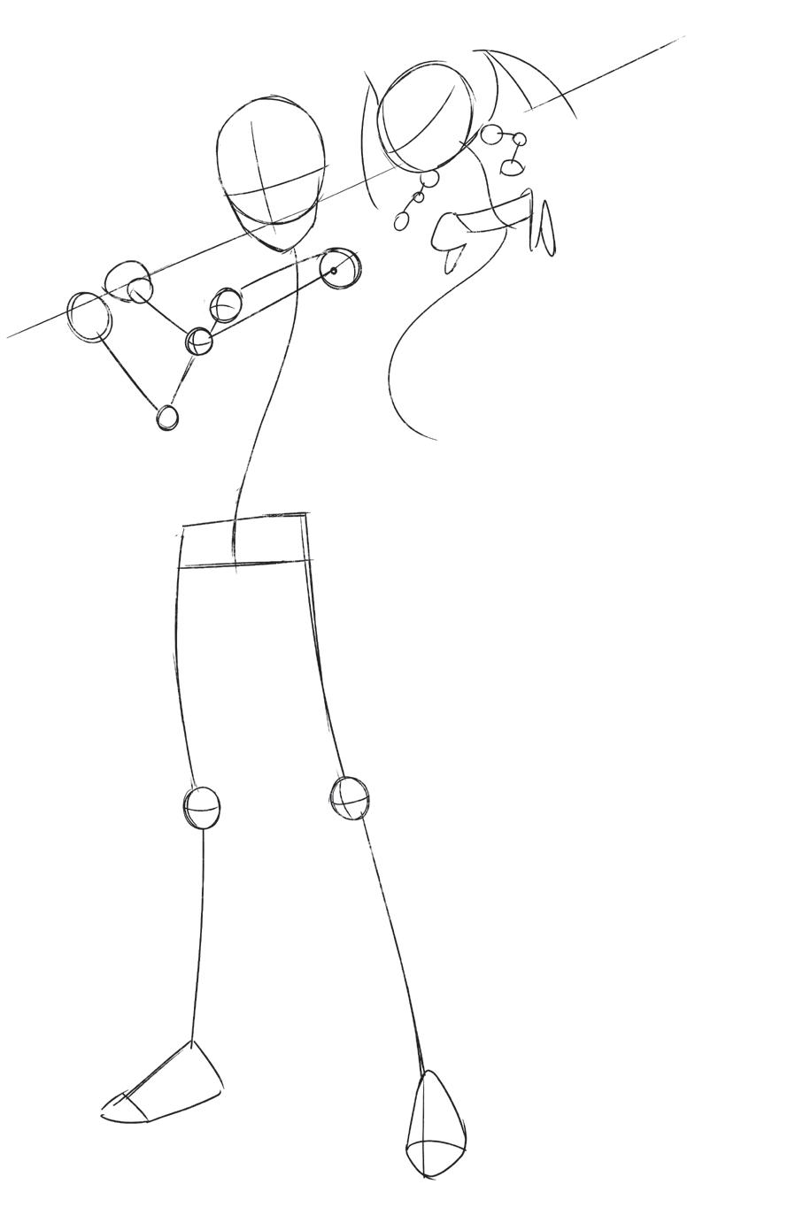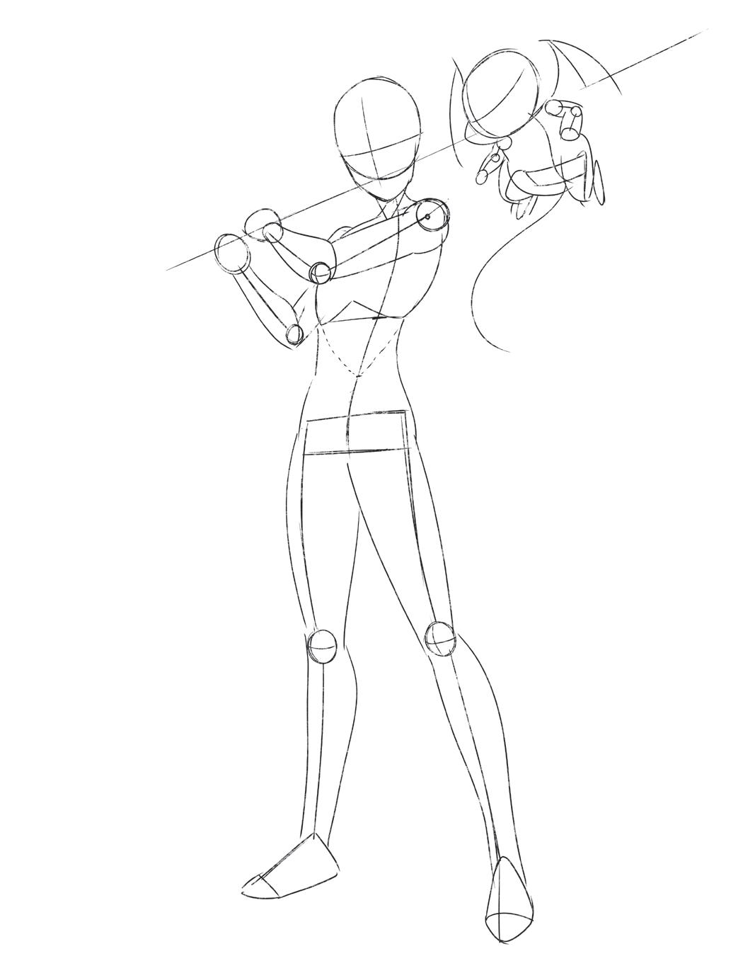 Abyste si ověřili správnost postoje postavy, nakreslete svislou čáru od hlavy až po paty.