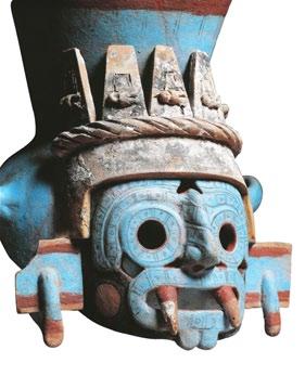 Chac Mool ed lalocovou svatyní se nacházel Chac Mool socha mu e le ícího na zádech s pokr enými koleny, miskou na hrudi a hlavou oto enou o devadesát stup tak, e hled la sm rem na prostranství rozkládající se p ed pyramidou ento typ sochy je starší ne aztécká kultura a byl typický i pro kultury toltéckou a poklasickou mayskou Miska slou ila pravd podobn k ukládání ob tin Chac Mool nebyl samostatným bo stvem edstavoval pravd podobn mrtvého vále níka, jen m l doru it ob tiny lalocovi asto byl proto vymalován v jeho barvách nebo m l lalocovi podobnou tvá