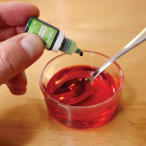 2. Přidejte deset kapek červeného potravinářského barviva.