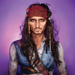 zesvětlil tvář až k linii čelisti, zatímco u Toma Hollanda jsem nepatrně zakulatil tváře jemným konturováním. Výrazných lícních kostí Jacka Sparrowa jsem docílil použitím tmavé ostřejší kontury.