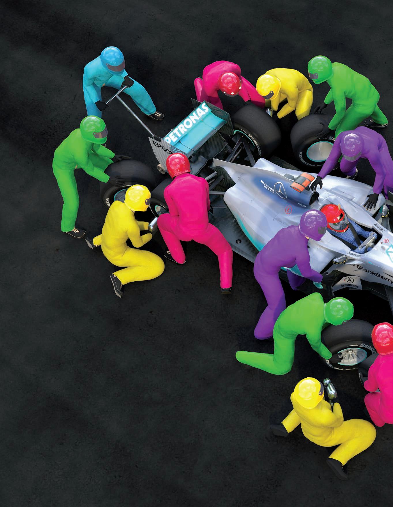 nebo výměny částí vozidla ještě před úplným zastavením vozu. Díky přesnému a nacvičenému postupu dokončí servisní týmy svou práci v průměru za méně než tři sekundy. A vzhledem k tomu, že o vítězích závodů mnohdy rozhodují zlomky sekundy, může dokonale fungující osádka mechaniků výsledek závodů rozhodujícím způsobem ovlivnit.