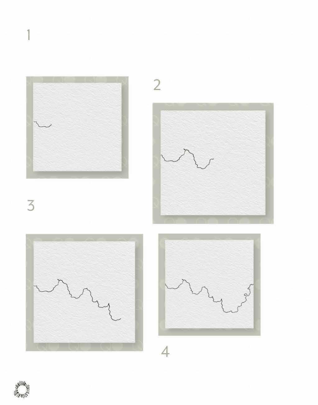 Zhruba ve středu levé strany papíru začněte pomalu kreslit zakroucenou linku, jako by putovala po kopcích přes stránku.