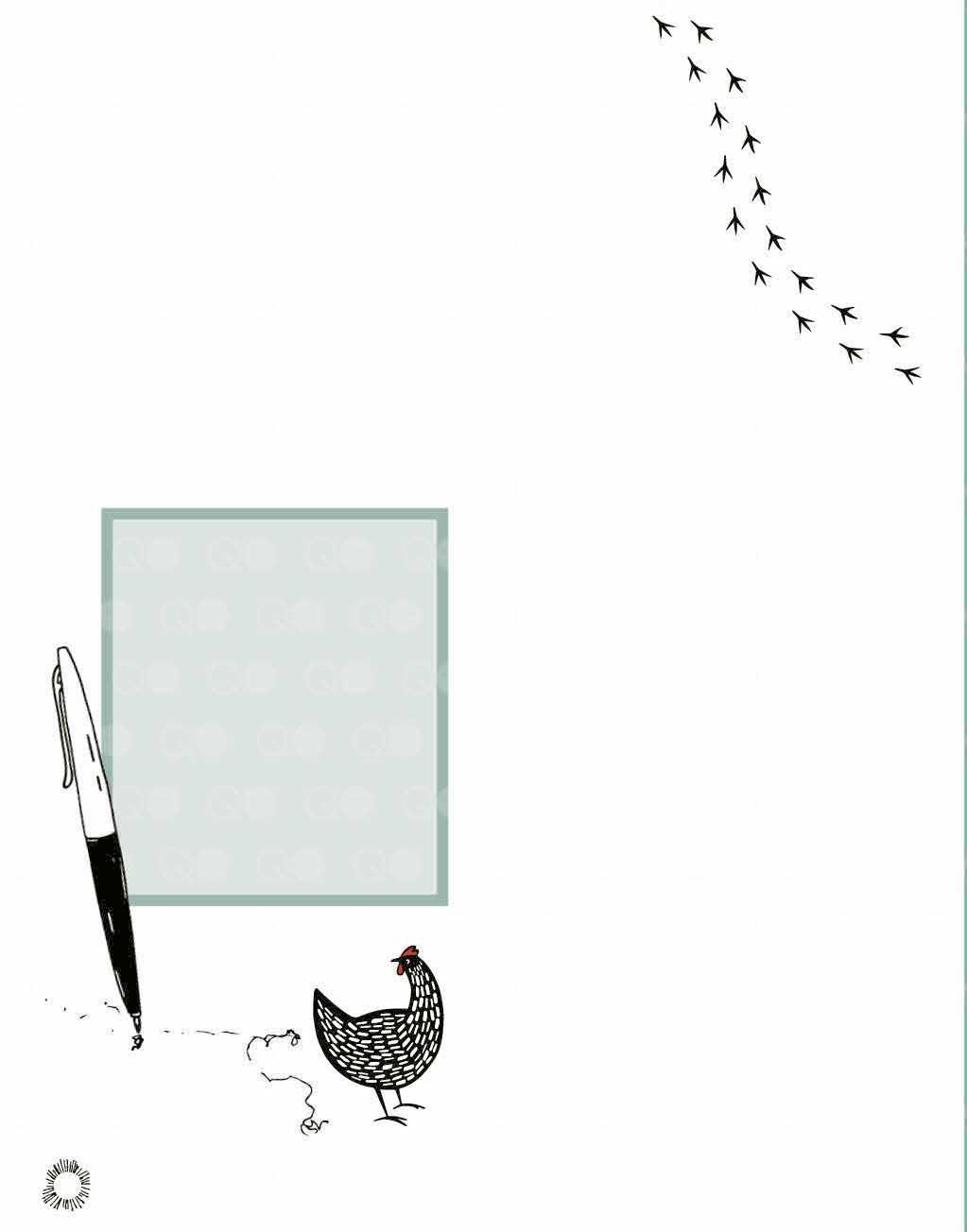 Zavřete oči a bílým gelovým perem začněte kreslit vzor kuří nohy na kousek akvarelového papíru. Jakmile inkoust zaschne, jemně ho přemalujte akvarelovými barvami a sledujte, jak se vzor znovu objevuje. Takhle připravený papír ráda používám jako pozadí pro další kresby, koláže nebo citáty ve svém uměleckém deníku.