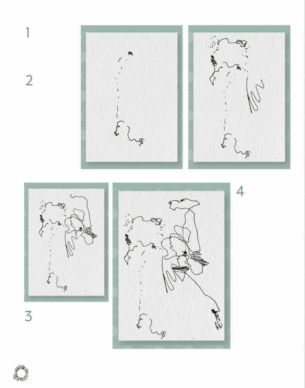 Po chvilce první kartičku odložte a pokračujte na další. Všechny nachystané kartičky pokreslete, aniž byste otevřeli oči. Pokuste se odolat nutkání na ně kouknout. Nejlepší je, když se na všechny podíváte až na konci.