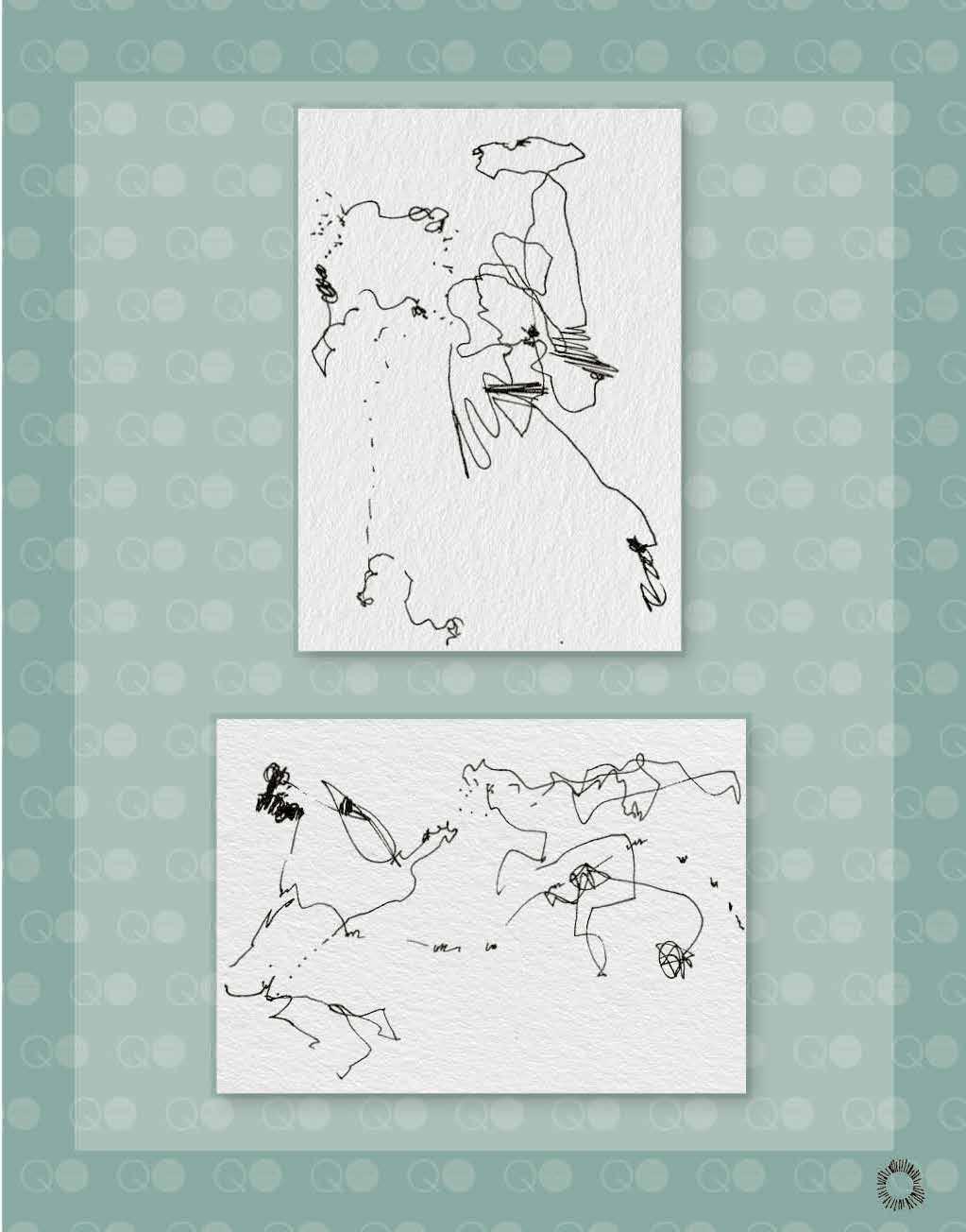 Tento vzor několikrát zopakujte a až budete schopni u kreslení odpočívat, pohodlně se usaďte a podívejte se, co se na kartičkách vlastně objevilo za kresby. Můžete jimi otáčet, dokud neobjevíte alespoň jeden vzor nebo tvar, který se vám líbí. S ním potom můžete experimentovat a střídat pohyby, které vám jsou příjemné, s těmi, které vytváří pěkné vzory. Když budete takto otevřeně objevovat, jaké kreslení vám vyhovuje, naučíte se při tvoření uvolňovat, vytvářet jedinečné vzory a držet vnitřního kritika na uzdě. Budete tak ještě kreativnější.