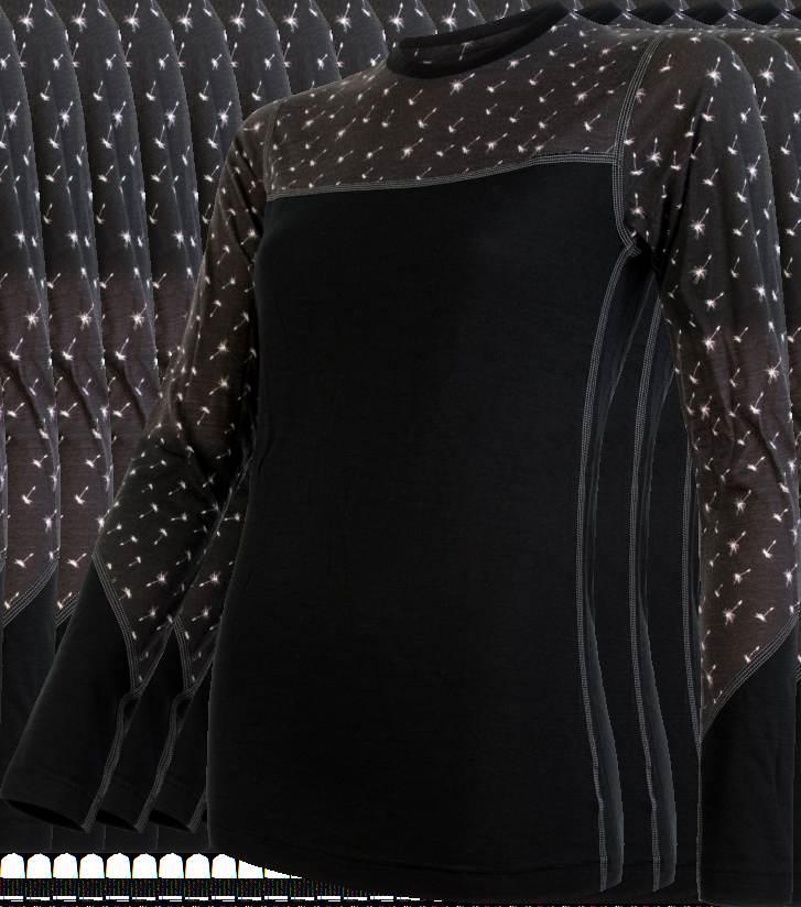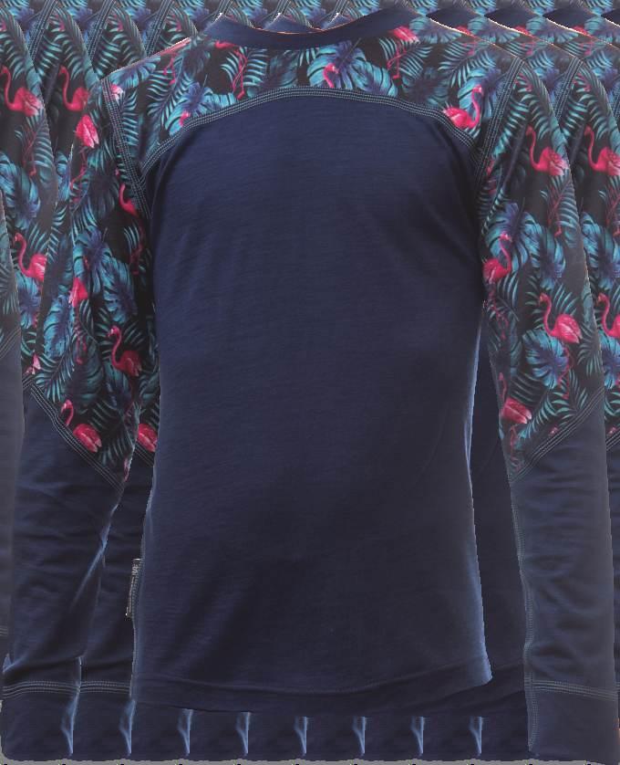 This is plain-jersey mixed-yarn fabric made of very fine Merino wool and polyamide silk which is very soft and pleasing to the touch. Regular fit series has modern prints and is looser which makes it optimal for year-round use. Comfort is enhanced by slits on the side.