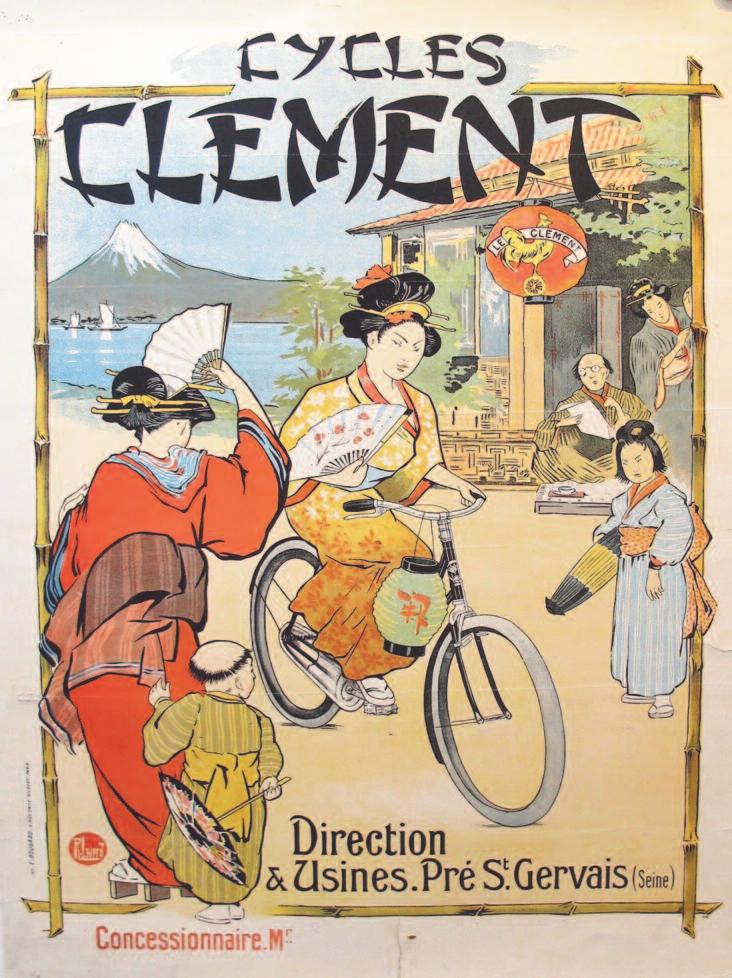 This poster for Clément bicycles, circa 1900, illustrates the Japanese influence