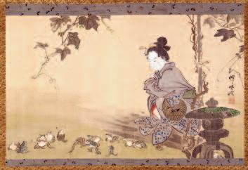 Kyôsai, Beauty looking at frogs, 1871, Kawanabe