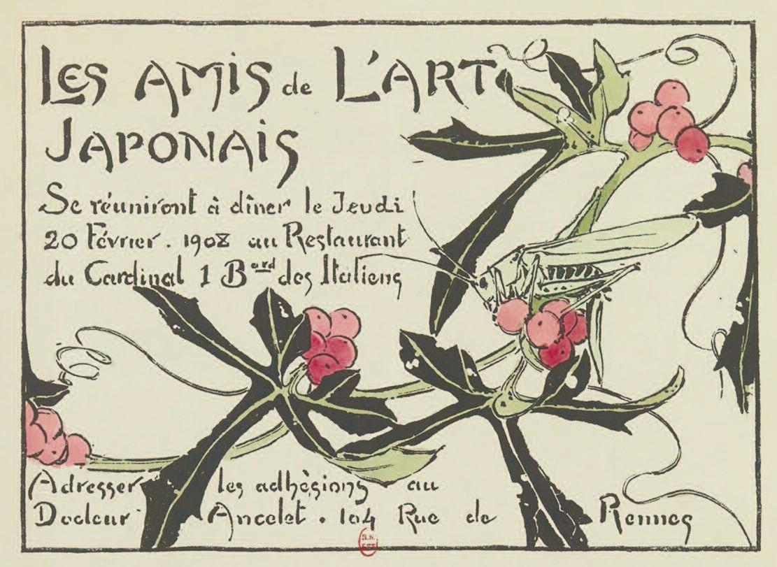 It was thanks to the initiative of Siegfried Bing that the Society of Friends of Japanese Art came into being. Its meetings were announced on cards decorated “in the Japanese style”