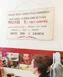 入ってすぐ左側の壁に、カーサ・ ミゲルの入り口にあった日替わ りメニュー5フランという看板が 掲げられている。