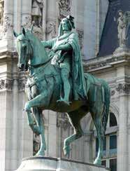パリ市庁舎のセーヌ側にブロンズの騎馬像がある。 これは初代パリ商人頭エチエンヌ・マルセル(1315頃 - 58)像。彼は1354年にパリの商人頭となり、今で いう市長の任務を負った。フランス革命後、市長は 選挙で決めるようになったが、1871年のパリ・ コミューンでパリ市役所と市長の役職が廃止 となり、市議会議長が市長の任務に就いた。 市長の座を復活させると決めたのはジスカー ル=デスタン大統領。そして1977年、ジャッ ク・シラクが当選し、最長の任期18年を務め た。その後ジャン・ティベリ、ベルトラン・ドラ ノエ、アンヌ・イダルゴと続き、グレゴワール 新市長は、革命時から15人目となる。