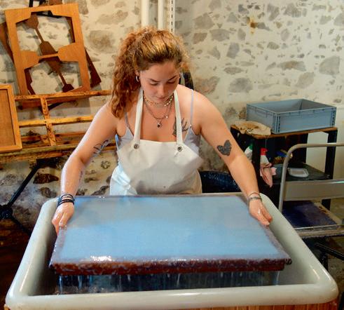 1489年創業 のこの工房 は1954年まで 操業していたが、その後解体計画が浮上。 製紙・印刷業者が中心となって1997年に 協会を作って保存を目指し、2003年に工 房を再スタートさせた。工房見学(年間1万 5000人)、紙 づくりワークショップ、製品 を売るブティックなどの売上でスタッフ6人 の運営費の93%をカバーする。年に1回展 覧会も開いており、12月23日まで開催中の 展覧会は紙の服やアクセサリーがテーマ。