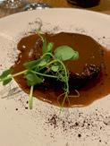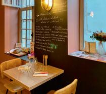 今号の表紙を飾ってくれたシェフのマチューさんが、ひとりで切り盛り する小さなビストロ。地元の小規模生産者の食材にこだわった料理は、 シンプルで食欲をそそる。コースは2つで、ブッフ・ブルギニヨン含む定 番コースと、週替わりのコースがあり、どちらも28€とリーズナブル。