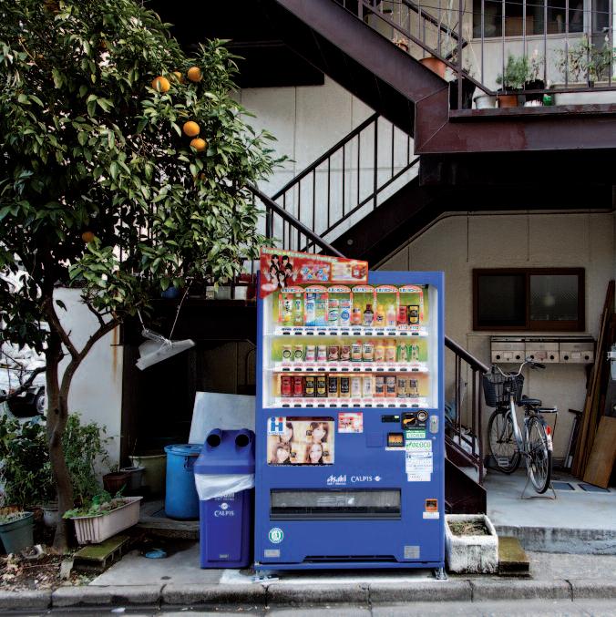There are three elements in the Japanese landscape that can be found all over the countr y : the train, Buddhist temples or Shinto sanctuaries and vending machines ( jidohanbaiki) With a distribution of one for ever y 24 people and close to 5.1 million units spread a ll over the archipelago, there are more vending machines in Japan than in any other countr y It is no exaggeration to say the y are to b e found e ver y where, with machines on top of mount Fuji at a height of 3,776 meters as well as at 145 meters below sea level in Yoshioka Kaitei station situated in the Sei-