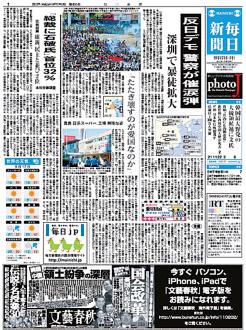 Anti-Japanese demonstrations in China on the front page of the 17 September edition of Mainichi Shimbun