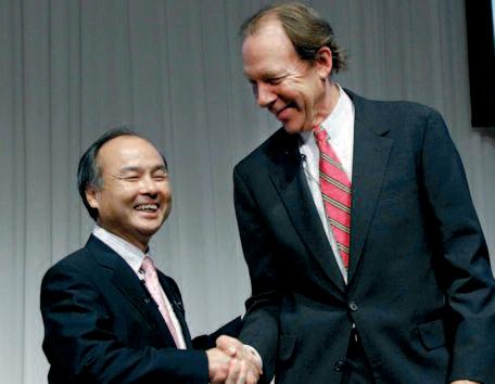 Son Masayoshi, manager of Softbank, with Dan Hesse, number one at Sprint, when they announced the American company’s purchase on 15 October in Tokyo