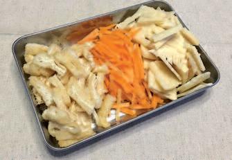 2 - Chop the carrot and the fried tofu into 2 cm long lengths Finely chop the bamboo shoots