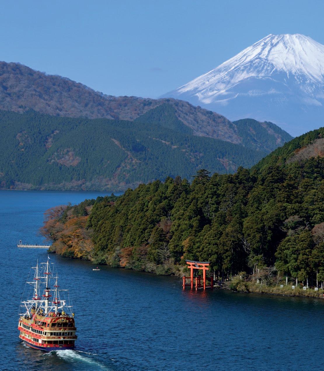 With its hundred-year-old traditional inns, hot-water springs, lush landscape and views over Mount Fuji, the Hakone spa, situated an hour and a half to the west of Tokyo, is a favourite destination for travellers and Tokyo inhabitants badly in need