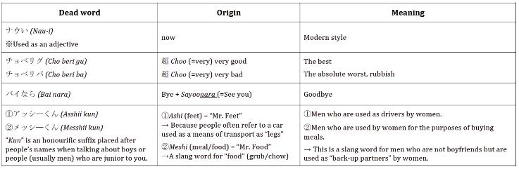 Many of these wakamono kotoba were spawned f r o m T V s h o w s o r d r a m a s , o r g a g s m a d e b y comedians, and then their popularity suddenly g r e w w a k a m o n o k o t o b a t h e s e d a y s a r e o f t e n p o p u l a r i s e d b y s o c i a l m e d i a , s u c h a s 草 k u s a (lol) and they can be difficult to understand as t h e i r m e a n i n g h a s m u l t i p l e o r i g i n s . I n t h a t many of these words have their origins in English or are a mix of English and Japanese, they
