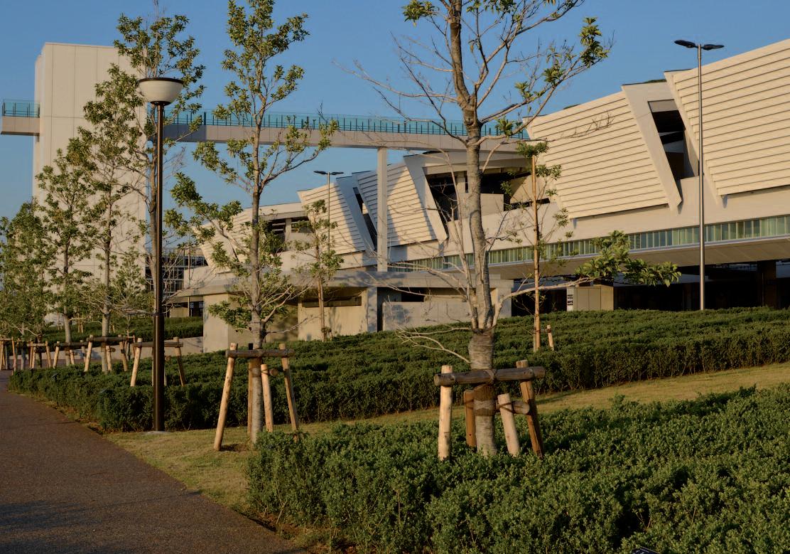 A l l t h e n e w v e n u e s c o n t i n u e i n t h e s e a r c h t o establish their own identity, but Toyosu will have to suffer several more years of comparison with Tsukiji, whose atmosphere is still more human, warmer and more lively, although it should gradually increase its ability to attract and seduce visitors For the past 6 months, sashimi addicts and lovers of good food have been delighted. They all agree that the seafood is exceptionally fresh! On the roofs of the three buildings of the new Toyosu market, all connected by overhead walkways, visitors have access to the “Roofgarden”. From this aerial position, covered in large areas of grass, they can enjoy a stunning view of the Rainbow Bridge, a beautiful white suspension b r i d g e i n t h e m i d d l e o f t h e b a y a n d , w h e n t h e weather is good, Mount Fuji can be seen on the horizon The architectural firm that created the project wanted to set the tone: a fusion of architecturally outstanding modern concrete structures within the surrounding natural environment, a green space suspended over the water The formal design of the contemporary Toyosu Gururi Park