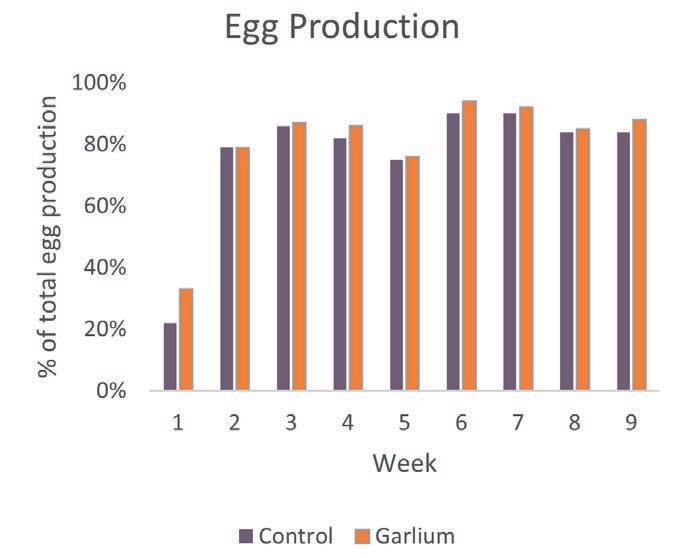 Nel secondo allevamento, la produzione di uova è stata significativamente maggiore nel gruppo Garlium