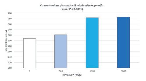I miglioramenti nelle performance di crescita (FCR) sono la principale conseguenza della degradazione quasi completa del fitato, della disponibilità di mio-inositolo (Figura 3), di amminoacidi ed energia.