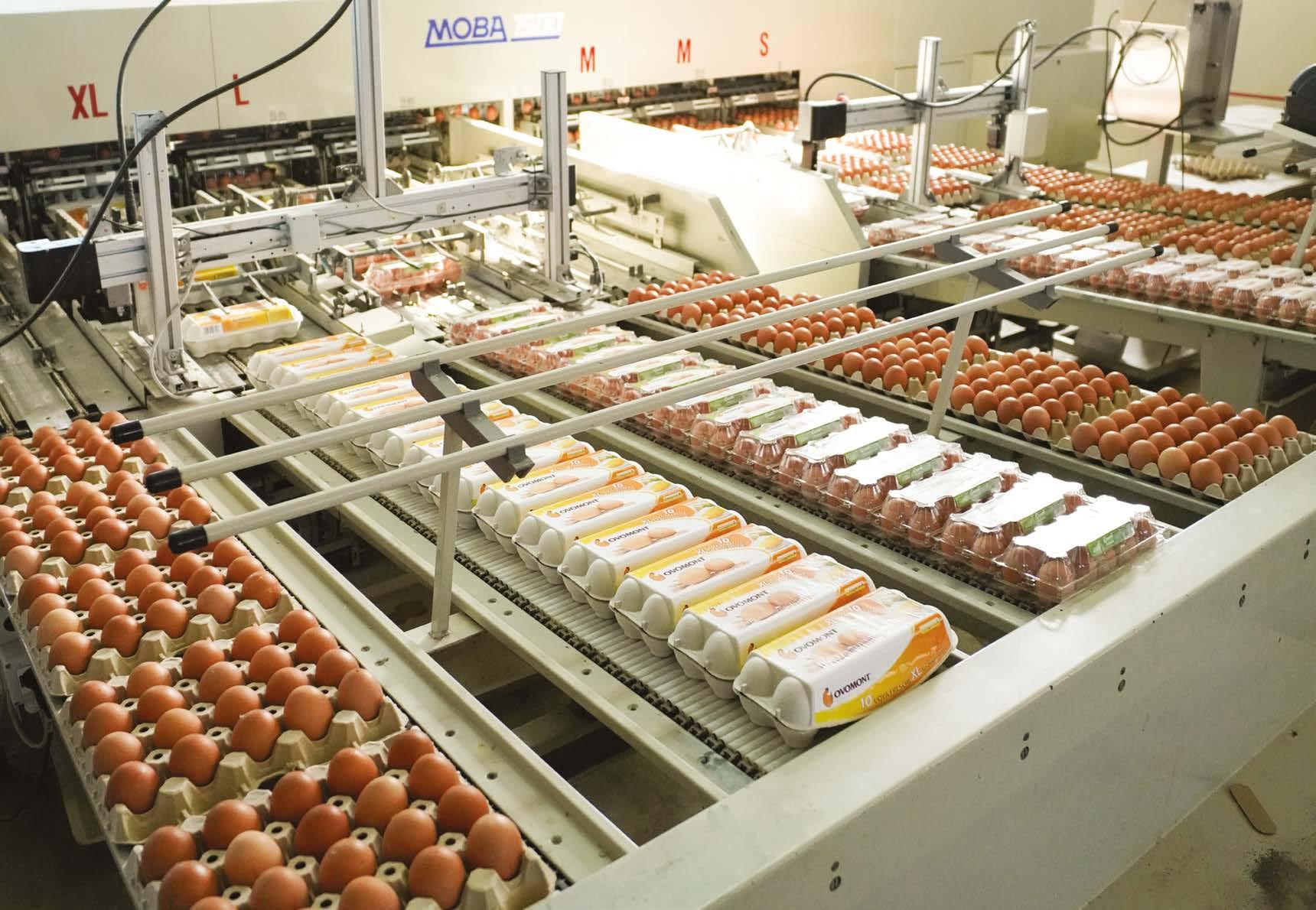 Attualmente Ovomont alleva 22.704 galline ovaiole in gabbie arricchite, complete di posatoi, grattatoi e aree per il bagno di sabbia, nel pieno rispetto delle normative sul benessere animale. Le linee genetiche vengono periodicamente cambiate in base alle esigenze produttive e di mercato. Le uova vengono raccolte quotidianamente in modo automatico tramite nastri trasportatori, selezionate, calibrate per peso e imballate in confezioni, oppure in vassoi destinati al canale Horeca. Il centro di imballaggio interno garantisce un controllo diretto sulla tracciabilità: ogni uovo è timbrato e ogni confezione riporta il lotto di produzione, consentendo di risalire in tempo reale al ciclo di origine.