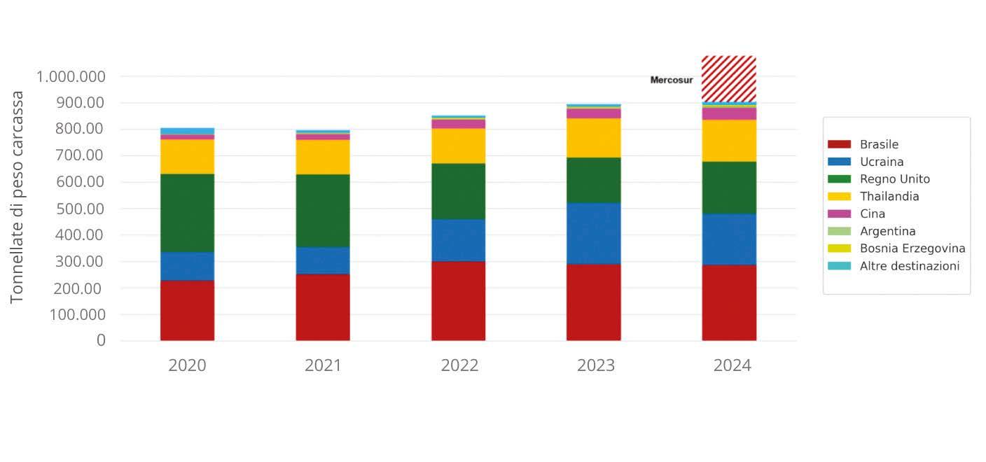 Secondo i dati Ismea 2025, tra tutti i prodotti proteici di origine animale, le carni bianche e le uova hanno registrato la crescita più significativa nei volumi acquistati dalle famiglie dal 2021 al 2024 (+11,8% e +9,7%).